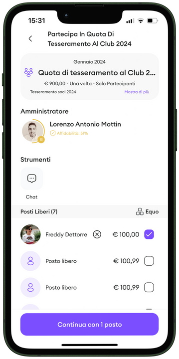 Con gli strumenti dedicati potrai condividere documenti e ricevute, chattare con i soci e accedere a un report delle spese del club.